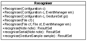 A configuration object may have multiple algorithms for the recognition process. The recogniser provides two methods which have a different behaviour regarding to the use of multiple algorithms. The recognise(Note note) method goes through the algorithms in sequential order and stops the recognition process as soon as one algorithm returns a valid result whereas the recognise(Note note, boolean recogniseAll) method combines the results returned by different algorithms.