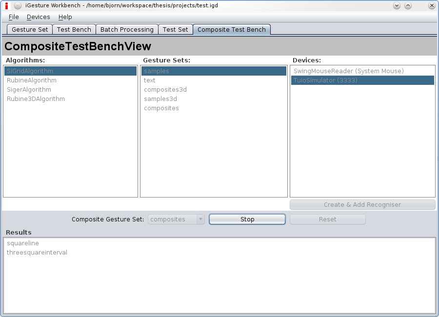 Composite Test Bench can be used to test the recognition of composite gestures. One or more